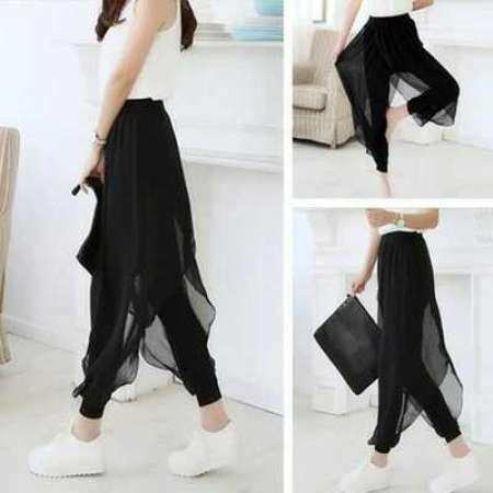 รายละเอียดสินค้า Korean Women S-6XL Plus Size Chiffon Pants Casual Harem Pants Loose Tapered Leg Cropped Pants Skirt